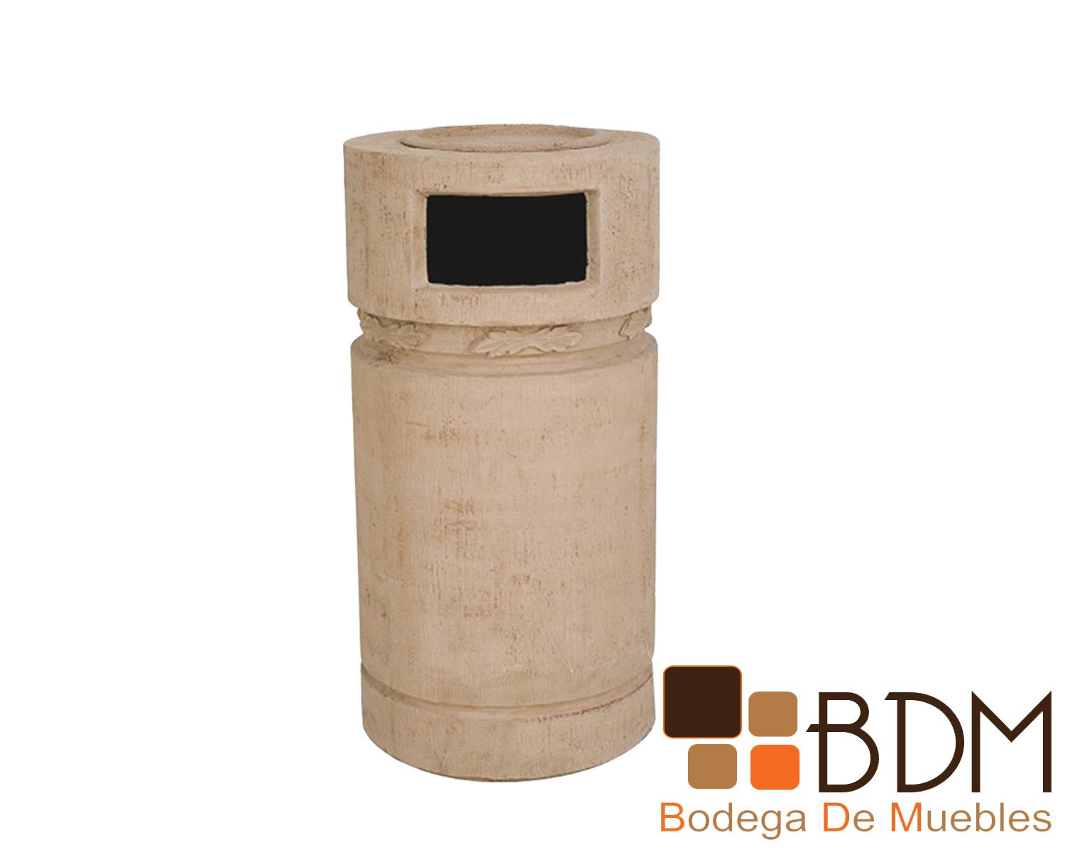 basurero Tepoztlán mediano está fabricado en fibra de vidrio en imitación cantera es sencillo y duradero. Pueden personalizarse con su logotipo o con algún detalle especial. Como todos nuestros basureros cuentan con un sistema que evita que se vea la bolsa de basura. La charola del Cenicero es opcional. Cuenta con unas medidas de Diam 50 x 100 cms. Disponible en varios colores.